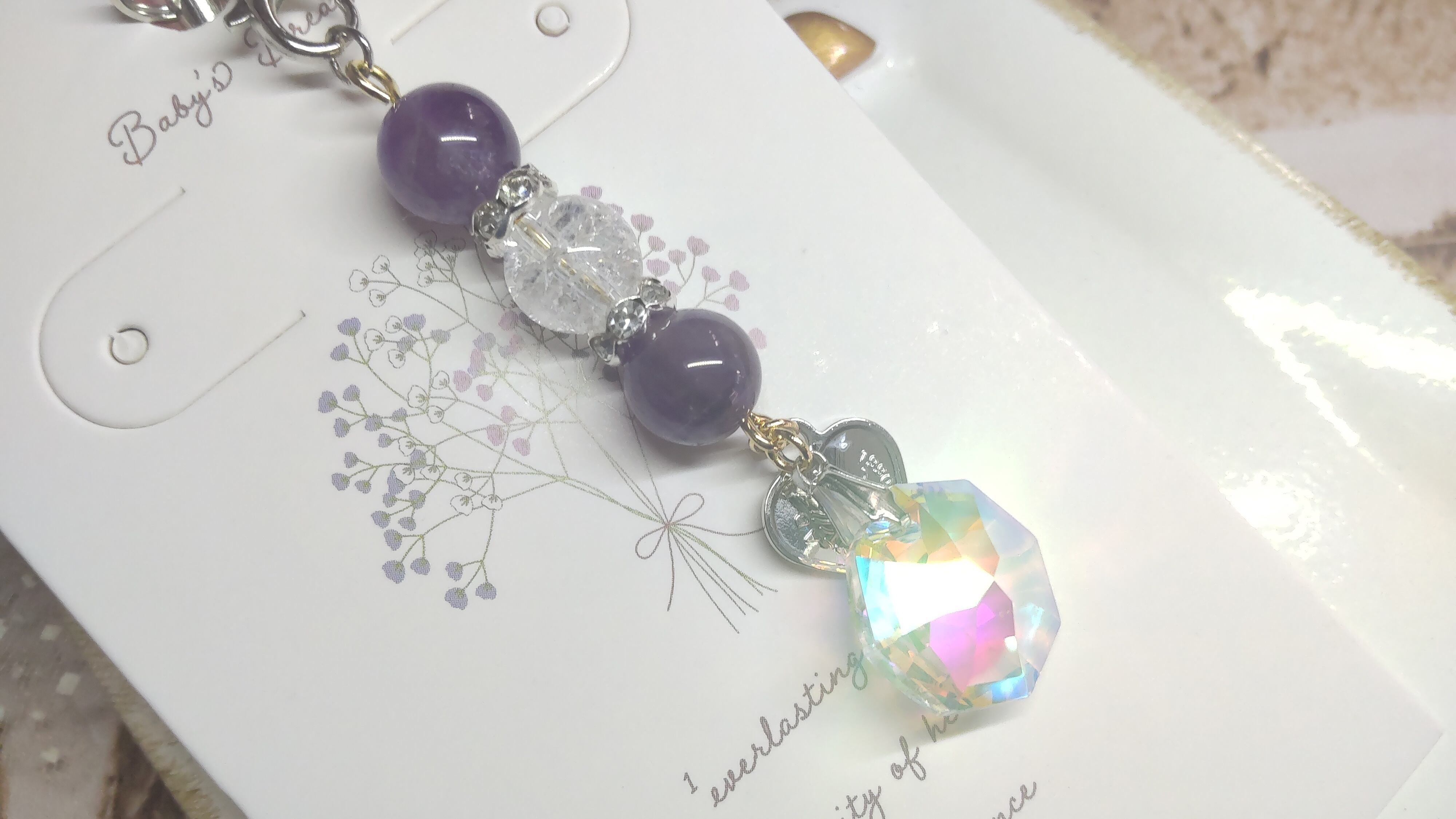 スワロフスキークリスタルを使用しているので、落としたり衝撃を与えると欠けてしまう場合がございますのでご注意ください。